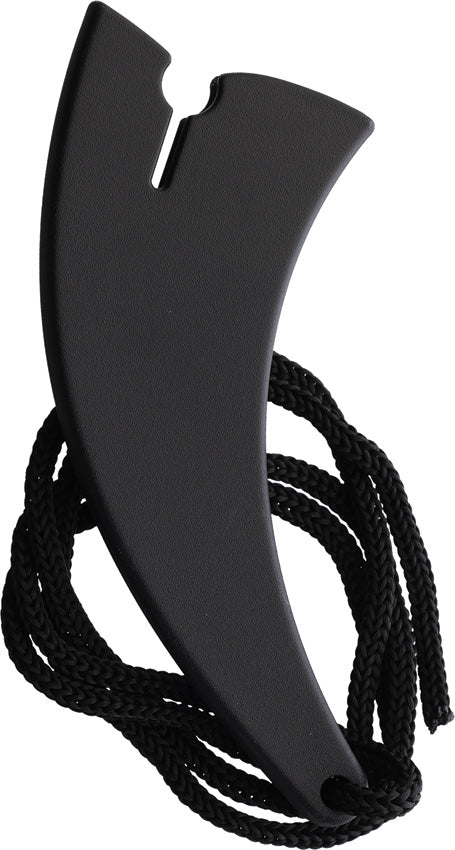 7.5" (19.05cm) overall. 3.5" (8.89cm) red finish stainless karambit blade. Black finger grooved ABS handle. Full, extended tang. Finger ring. Black ABS neck sheath. Boxed.