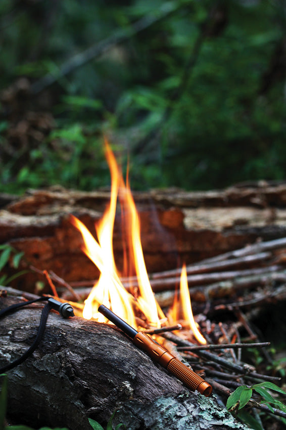 Replaceable Ferrocerium rod works well when wet. Diameter 0.43". Length 3.65". Lightweight and portable. Ultra-sharp tungsten carbide striking tool. More than 3000 fire-starting strikes per rod. Textured, lightweight 6061 aluminum body. Keyring and lanyard included. Weight 0.95 oz. Note: The striker handle for the XL version NanoSTRIKER is 46% bigger, than the original nanoSTRIKER making it easier to grip. The Ferrocerium rod is also 33% larger than the original nanoSTRIKER which improves the durability and lifespan of the rod. Blaze orange body.